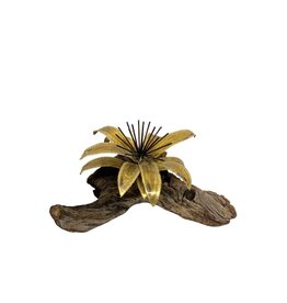 Vintage Brass Flower on Brown Driftwood